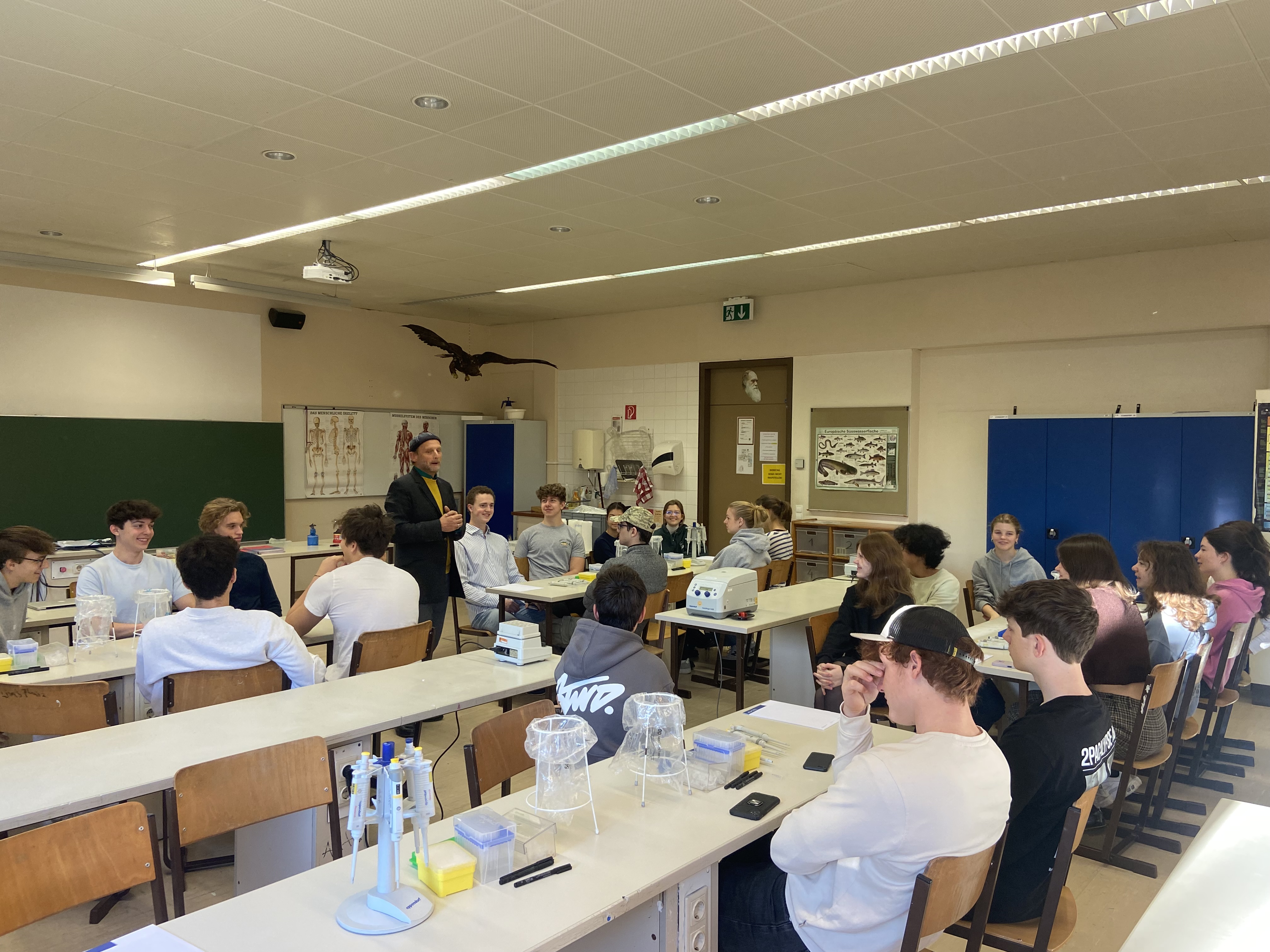 Im Rahmen unseres Biologieunterrichts fand für uns-die 8C-am Dienstag, den 7. November ein Genlabortag bei uns in der Schule statt. Geleitet wurde der Kurs von Dr. Reinhard Nestelbacher. Er unterrichtet unter anderem Molekularbiologie an der FH-Krems, ist der Gründer von „Flying Labs for Schools“ und bietet zudem Kurse im Bereich Projektmanagement an.