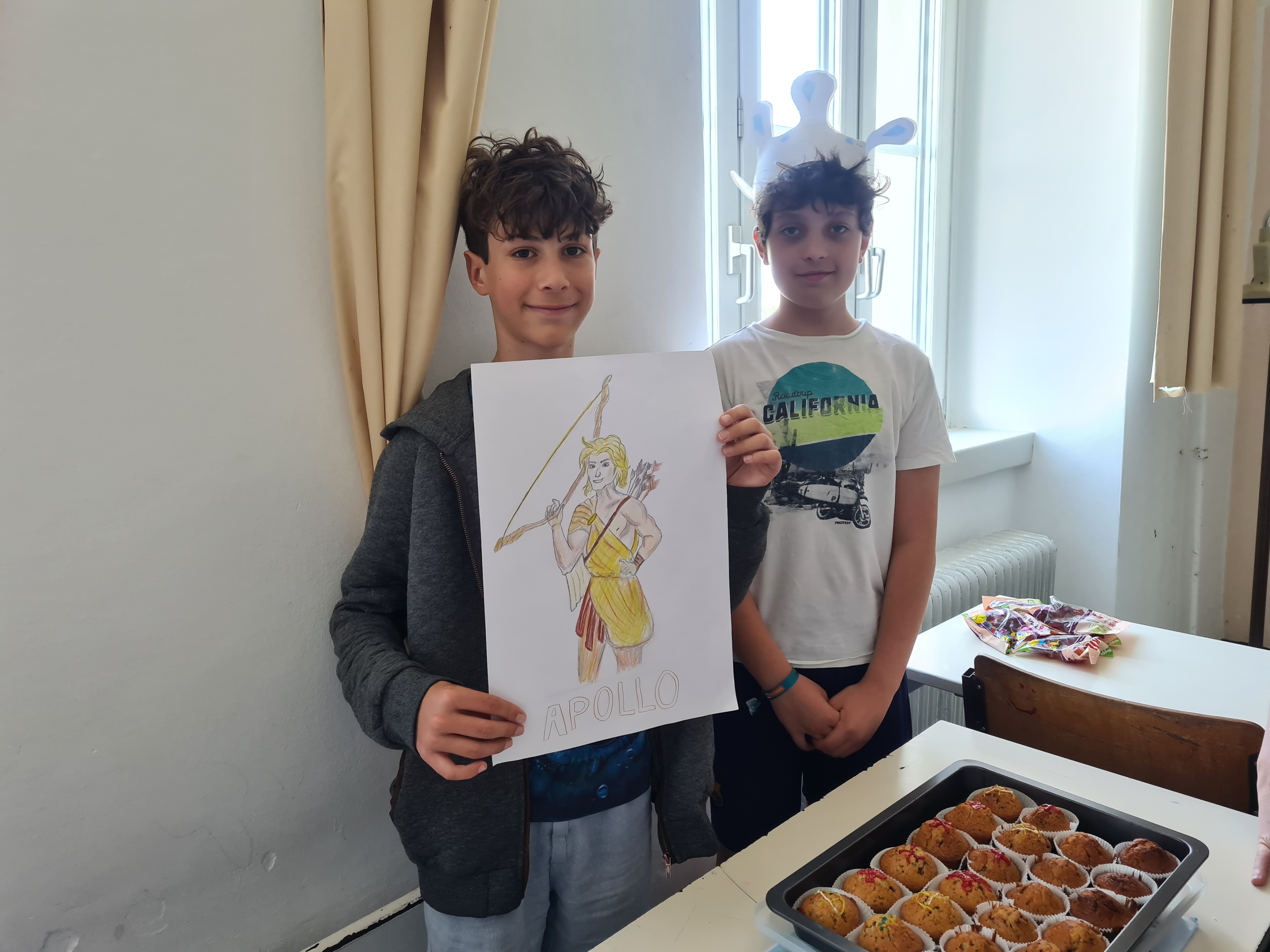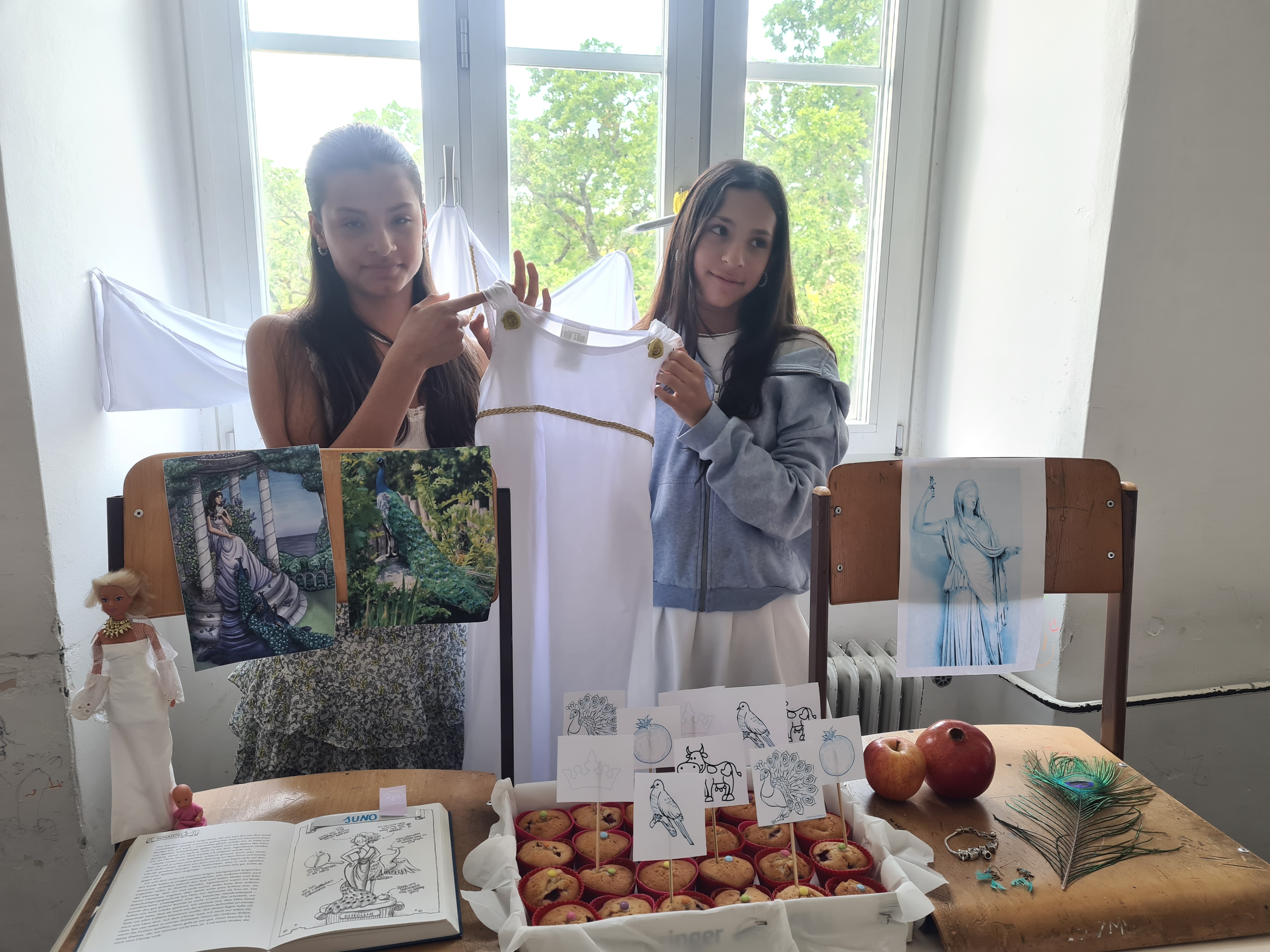 In der Lateindoppelstunde am Mittwoch dann hat sich der Klassenraum in ein Museum verwandelt und an den Tischen wurden von den Schülern die Gottheiten mit viel Selbstgebasteltem und-gebackenem präsentiert. Zum Beispiel gab es verführerische süße Herzerlmuffins bei Venus, Trauben zu verkosten bei Bacchus und sogar Mars - Schokoriegel, quasi einen Kriegsgott zum Vernaschen, bei Mars Museumstisch. Auch wurden Szenen aus dem Mythos lebendig nachgespielt und knifflige Quizfragen gestellt.
