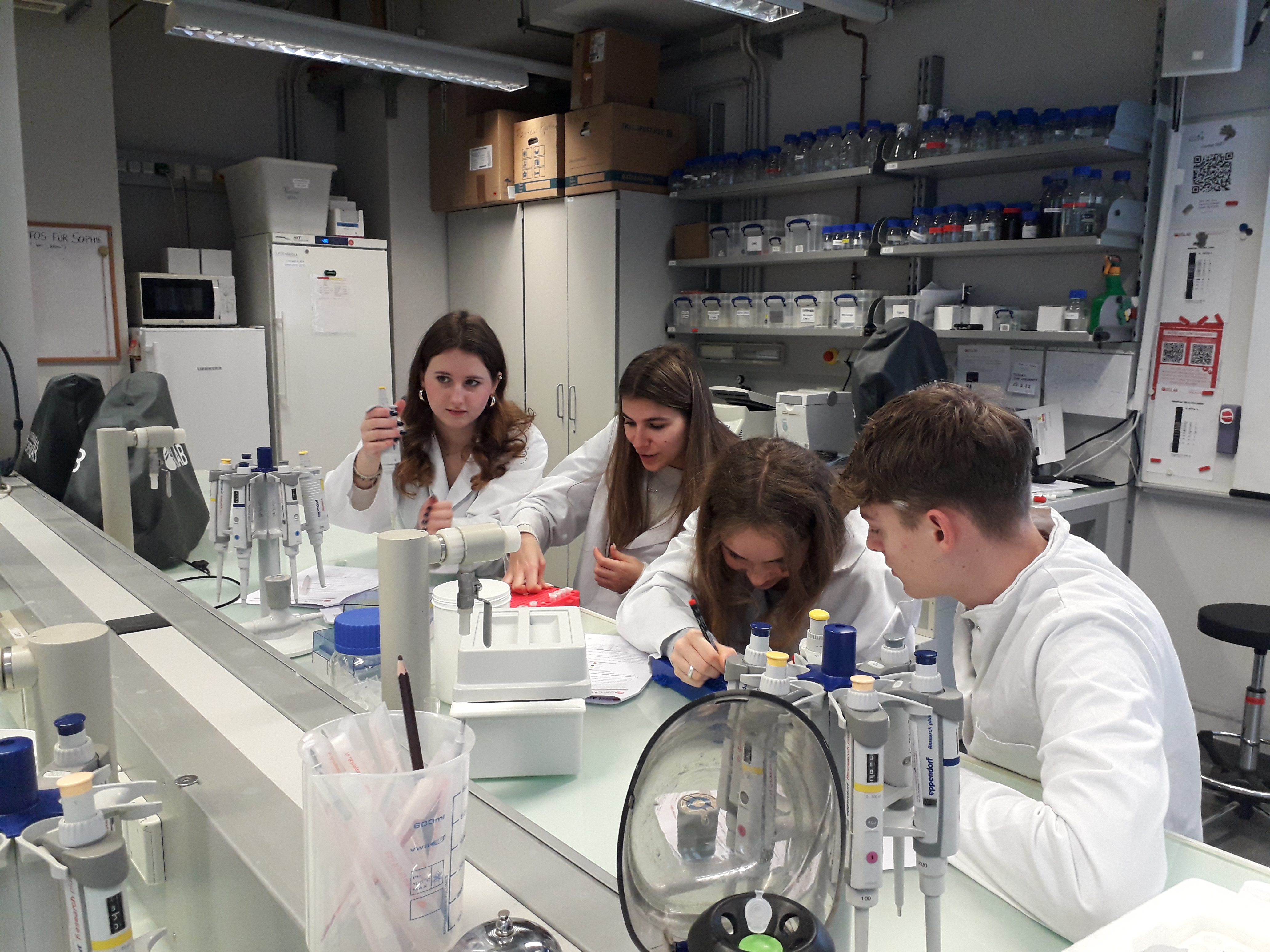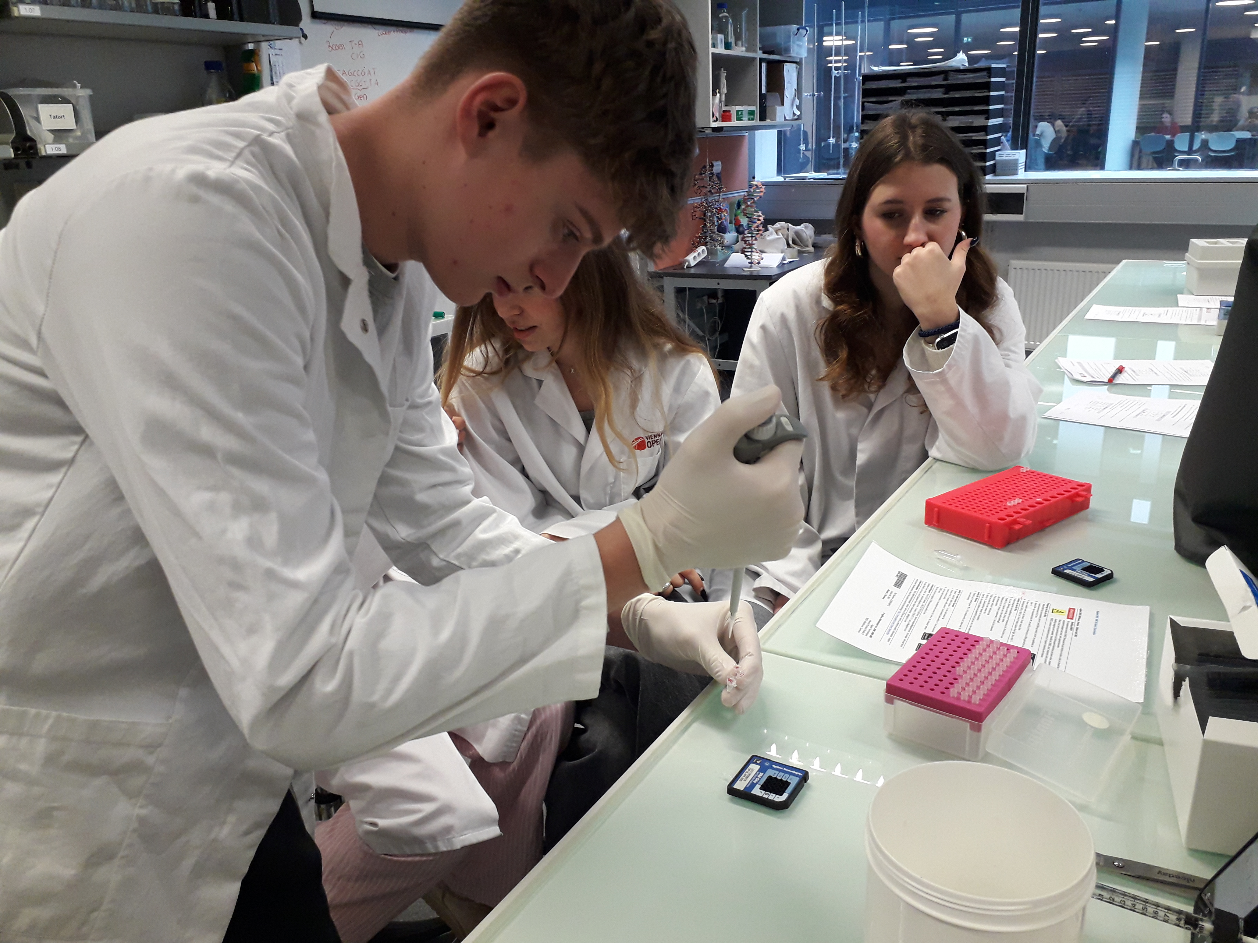 Im Rahmen des Sciene Lab hat die 8EN das VIENNA OPEN LAB besucht und genetische Fingerabdrücke aus DNA-Spuren erstellt, um einen mysteriösen Mord aufzuklären. Wie KriminalbiologInnen haben die SchülerInnen DNA aus Mundabstrichen gewonnen. Mittels Polymerase Ketten Reaktion (PCR) und anschließender DNA-Chip Analyse wurden genetische Fingerabdrücke angefertigt, um den TäterInnen auf die Spur zu kommen.