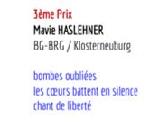 Beim Literaturwettbewerb "Haikus pour la paix", der in diesem Jahr dem Thema Frieden gewidmet war, erreichte Mavie Haslehner - 6B - österreichweit im B1-Niveau den 3. Platz.