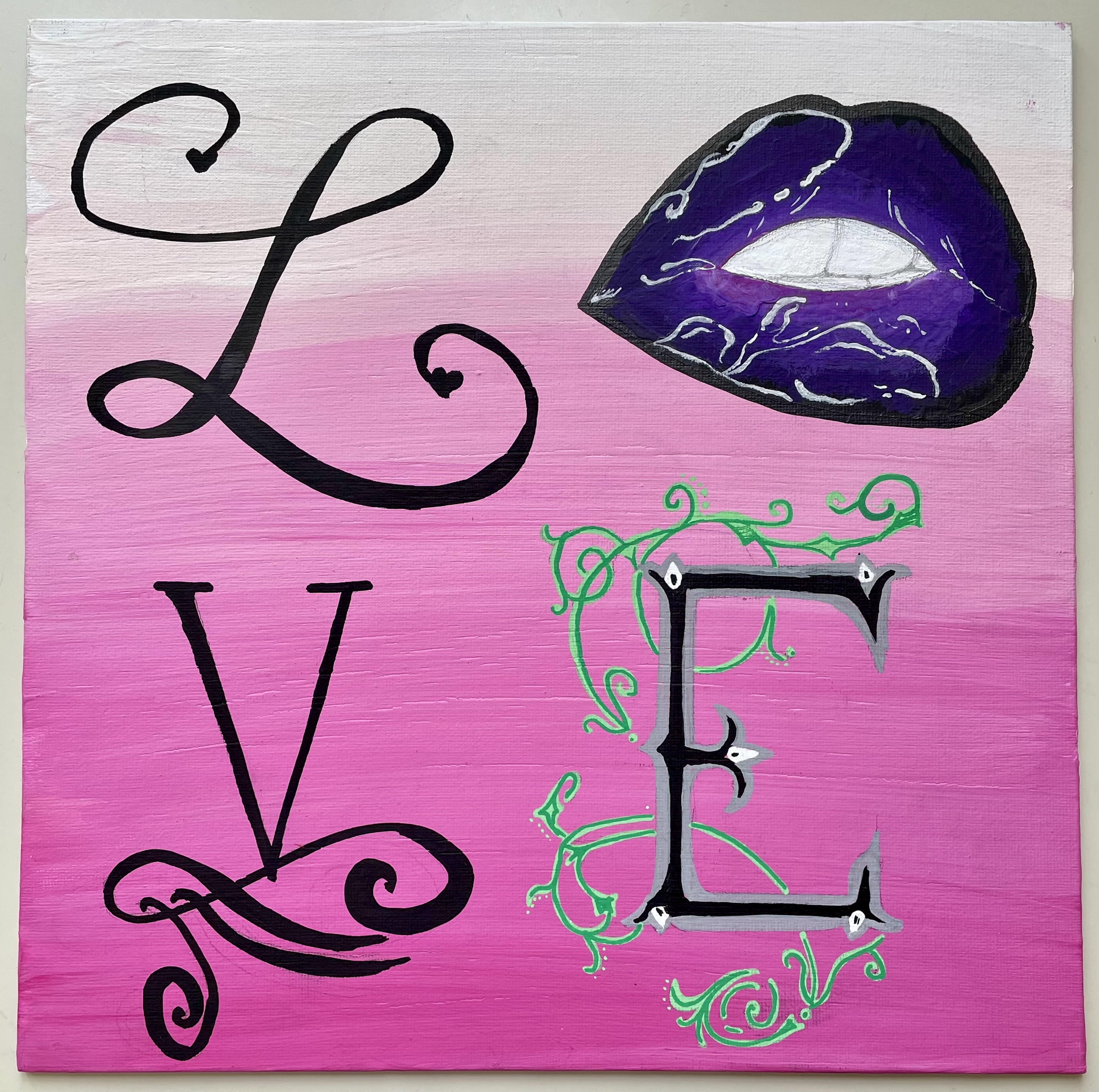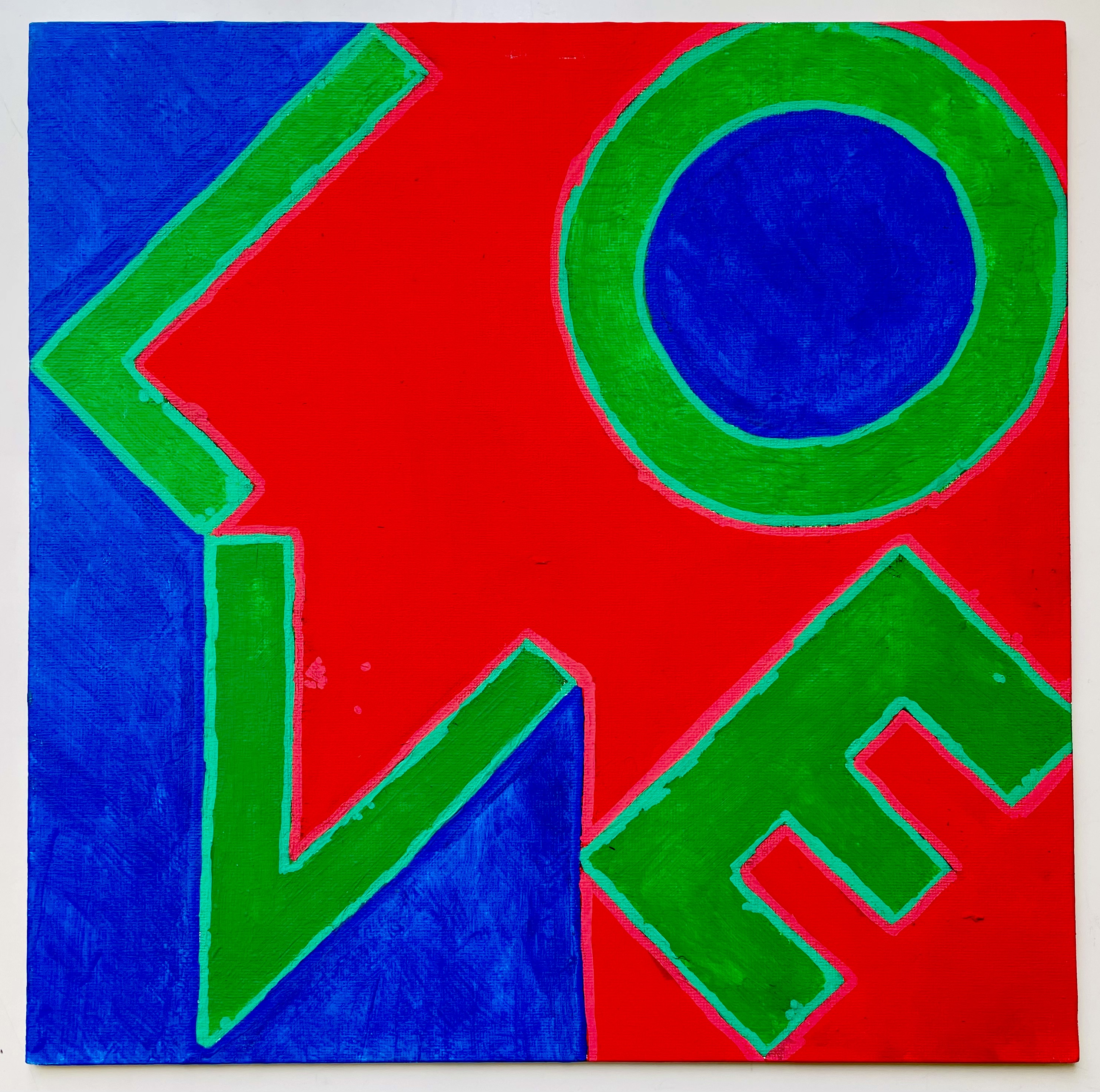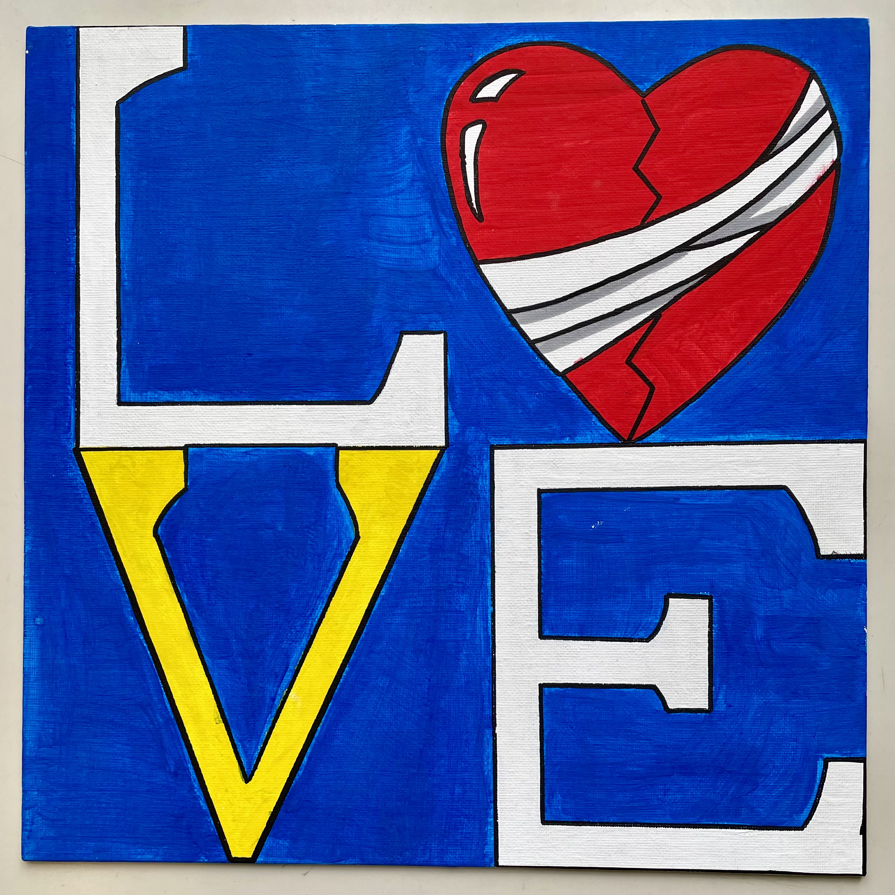 The inspiration for the students' works in class 4C, was the work of Robert Indiana/Pop-Art, and especially his work LOVE (1966). The students' works are contemporary reinterpretations of the work with acrylic on painting panels.