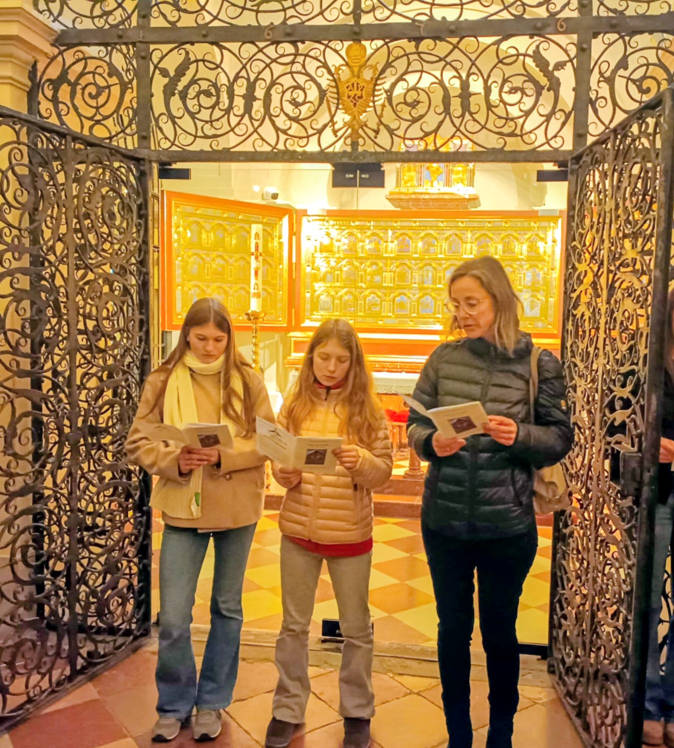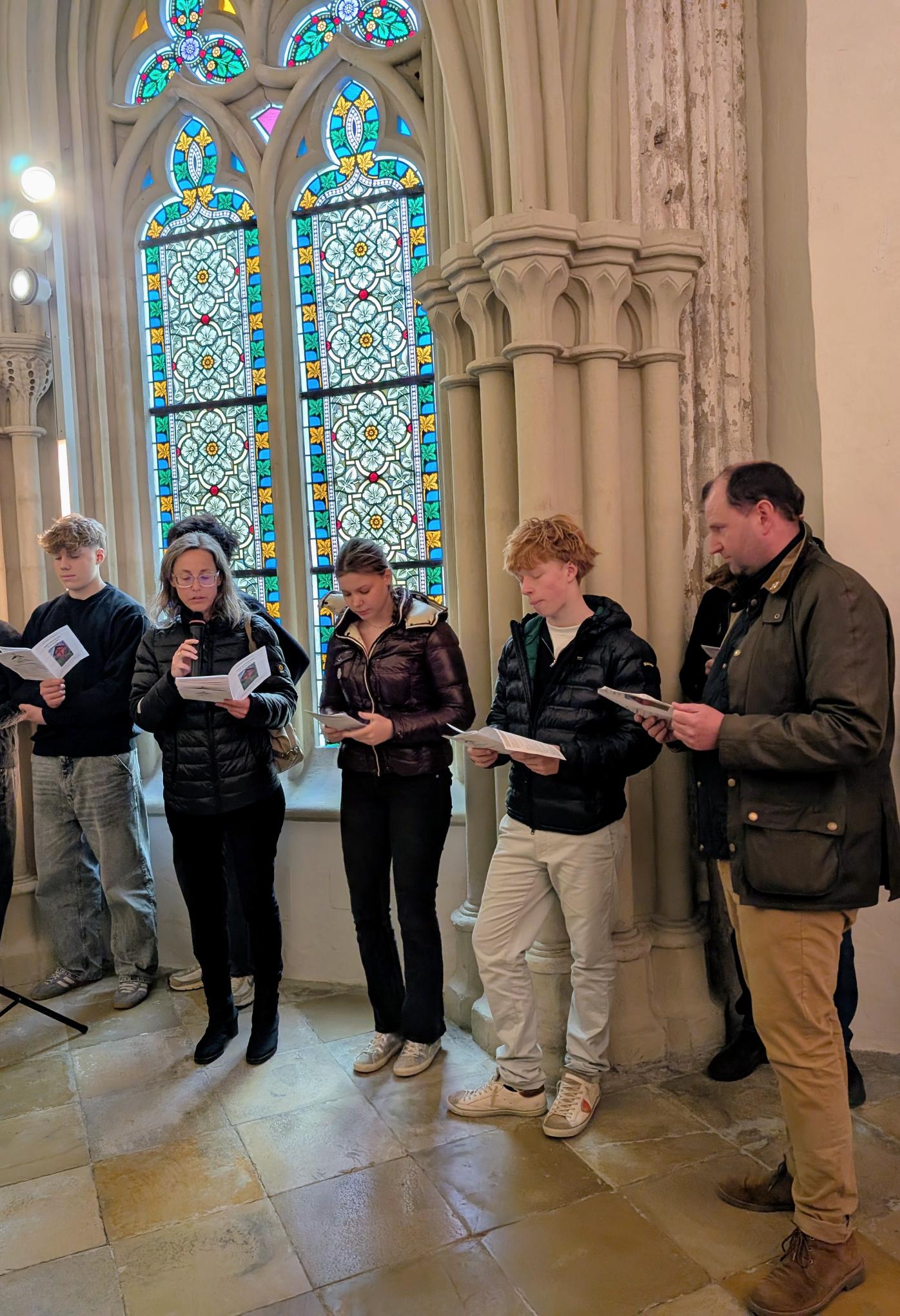 Nach der vierten Stunde machte sich das Team der Religionslehrkräfte gemeinsam mit Schüler:innen der Oberstufe auf den Weg zum ökumenischen Kreuzweg. Dieser fand wetterbedingt in der Stiftskirche und im Kreuzgang statt und nicht wie traditionell am Buchberg. Unter dem Motto „Jesus nachfolgen – Christsein leben“ regten die Texte zum Nachdenken an und boten eine gemeinsame Vorbereitung auf das Osterfest. Den Abschluss bildete eine kleine Agape mit selbstgemachtem Brot von Prof. Alois Kohlamyr, die Gelegenheit zum persönlichen Austausch bot.